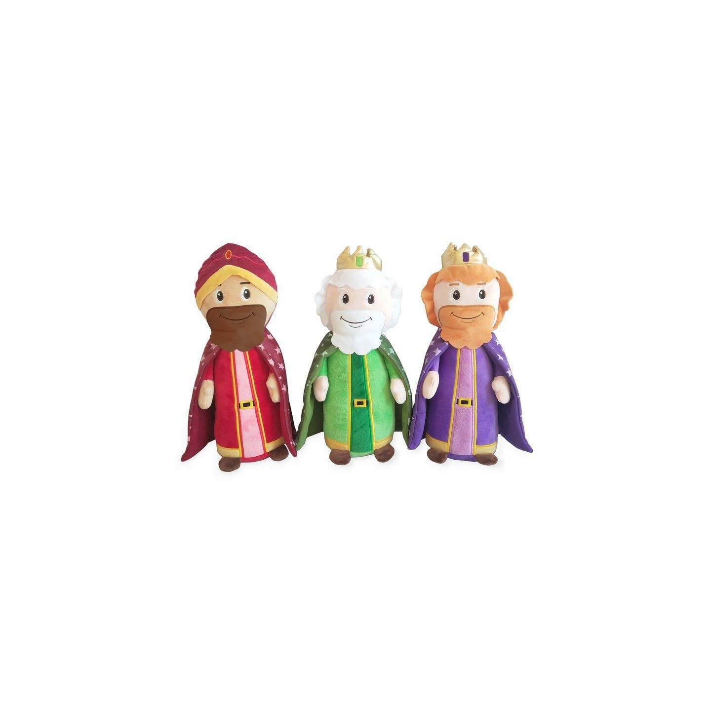 Peluche de 35 cm con diseño de los Reyes Magos, disponible en 3 modelos. Suaves, grandes y perfectos para decorar o regalar en Navidad.