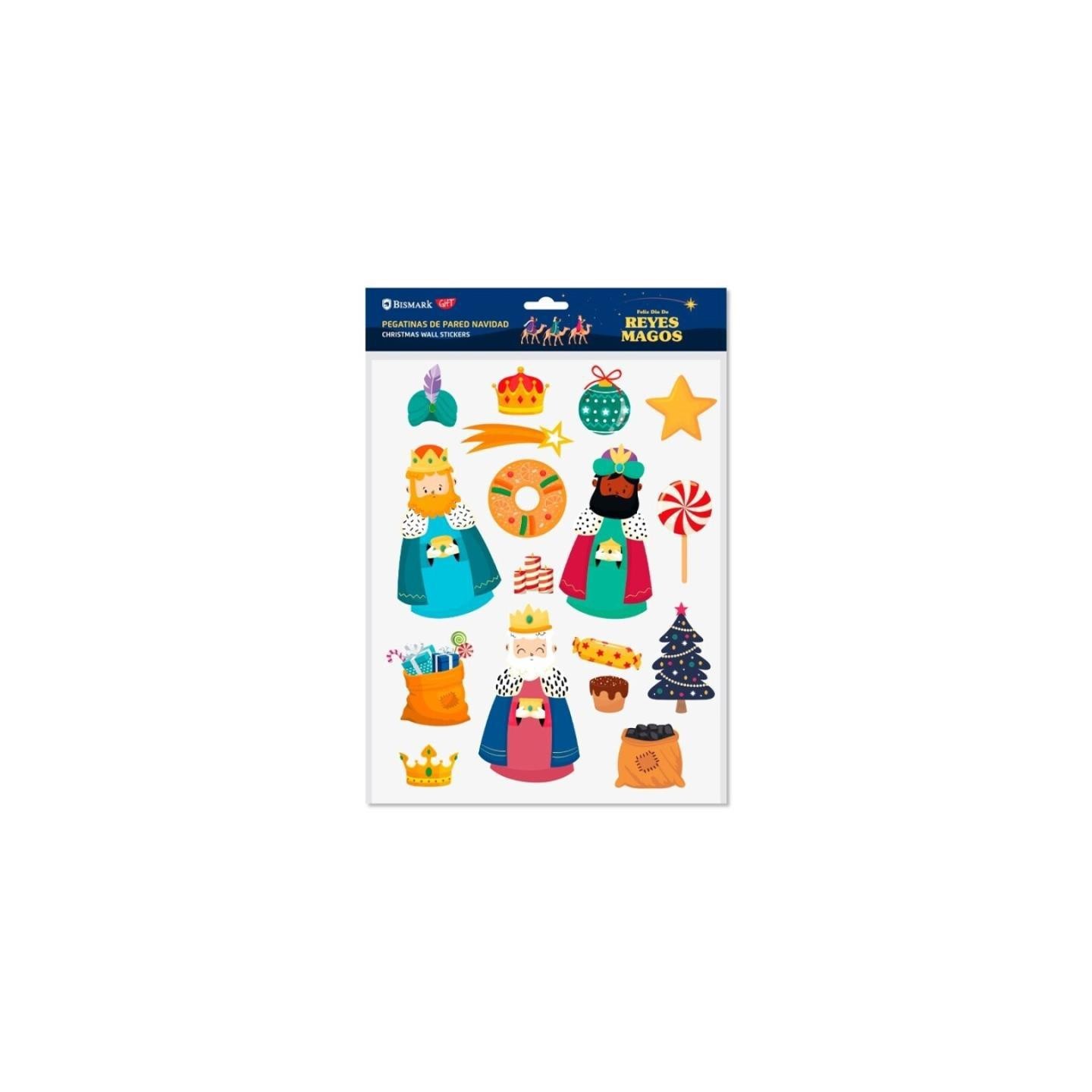 Pegatinas de pared con diseño de los Reyes Magos, ideales para decorar habitaciones, escaparates o espacios navideños con un toque mágico y festivo.