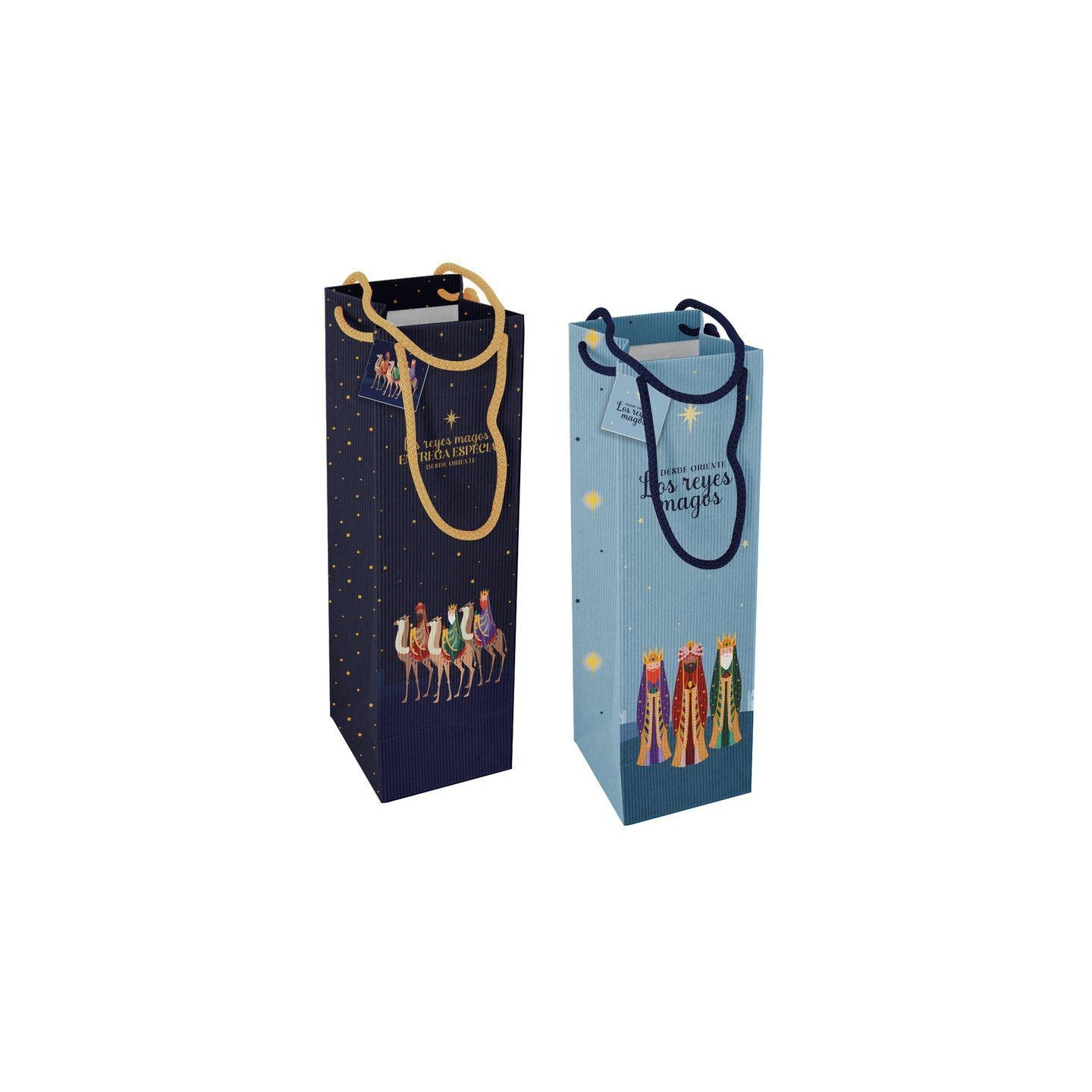 Bolsa para vino con diseño de los Reyes Magos, disponible en 2 modelos. Ideal para presentar tus botellas con un toque navideño y elegante.