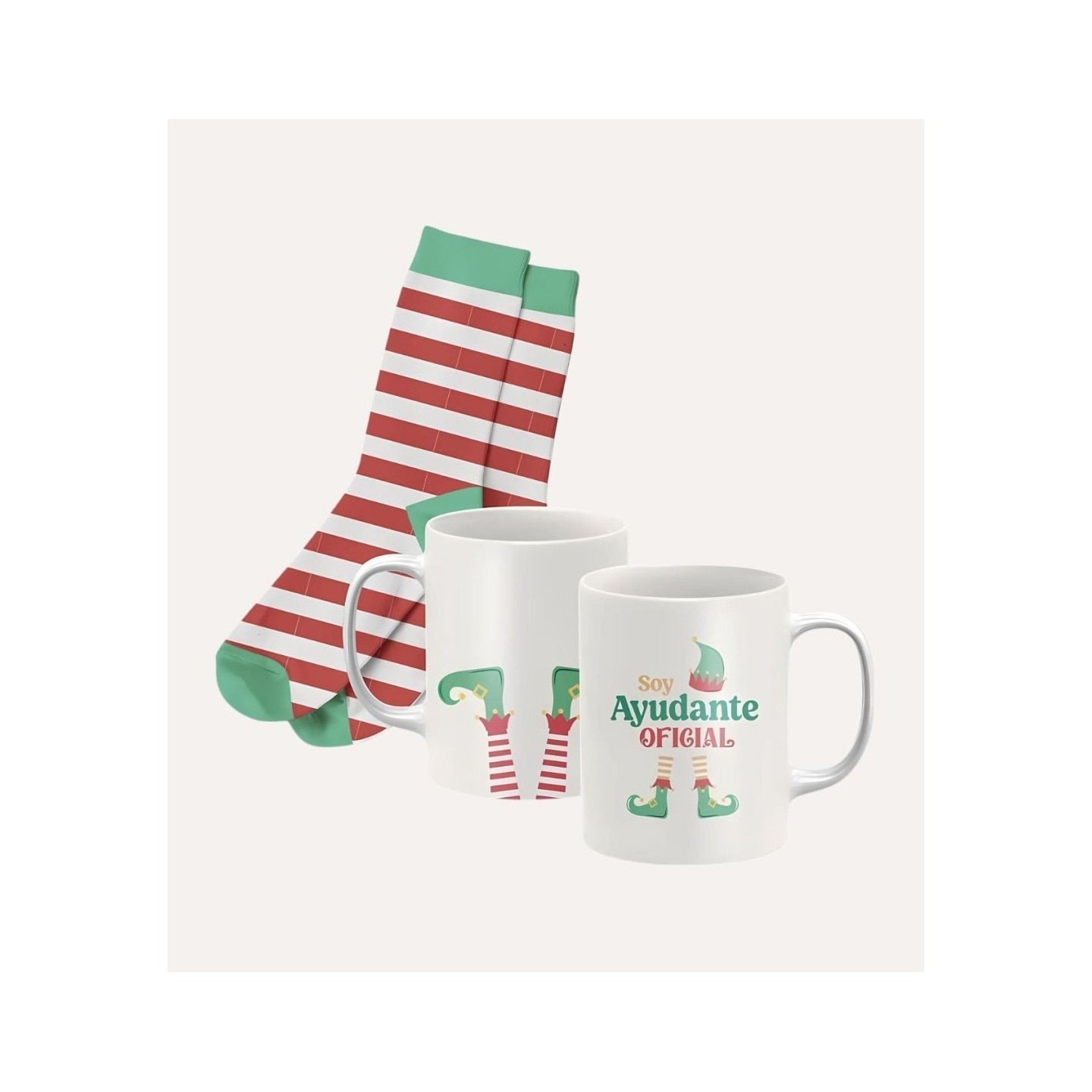 Set de regalo con taza de 300 ml y calcetín talla 38-42, con diseño de Elfo. Ideal para regalar en Navidad y disfrutar de un toque festivo y acogedor.