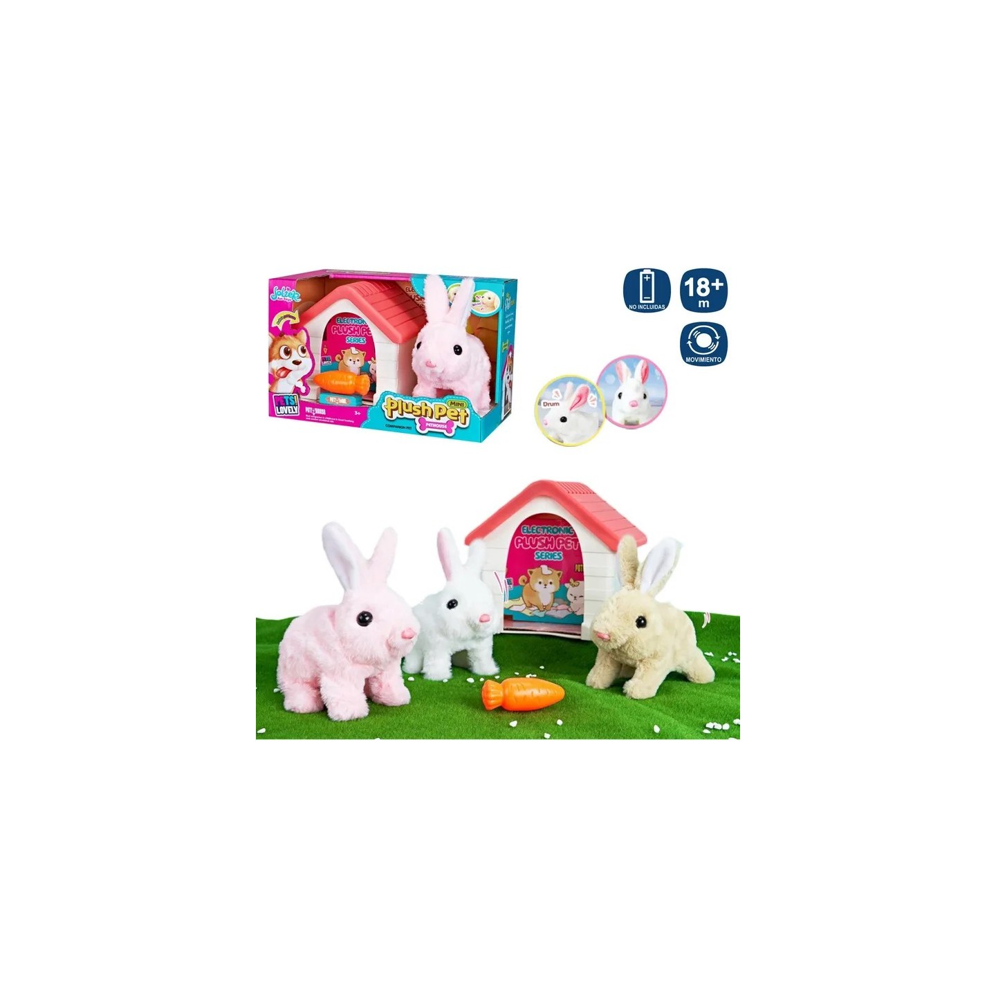 Conejo andador de juguete de 20 cm disponible en 3 colores. Ideal para niños que disfrutan del juego interactivo y del cuidado de mascotas.