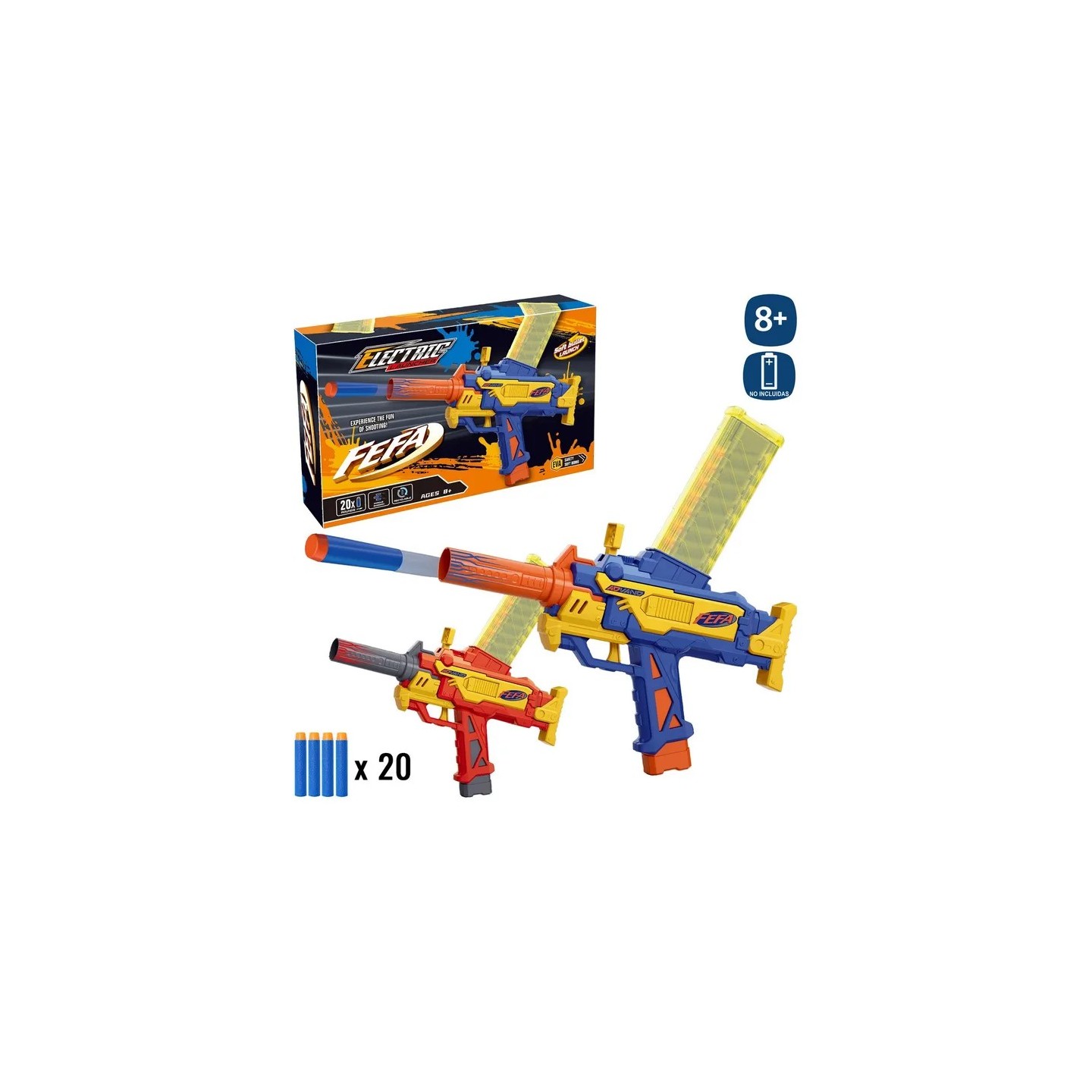 Metralleta lanzadardos eléctrica disponible en 2 colores. Ideal para que los niños disfruten de juegos de puntería y acción de forma segura.