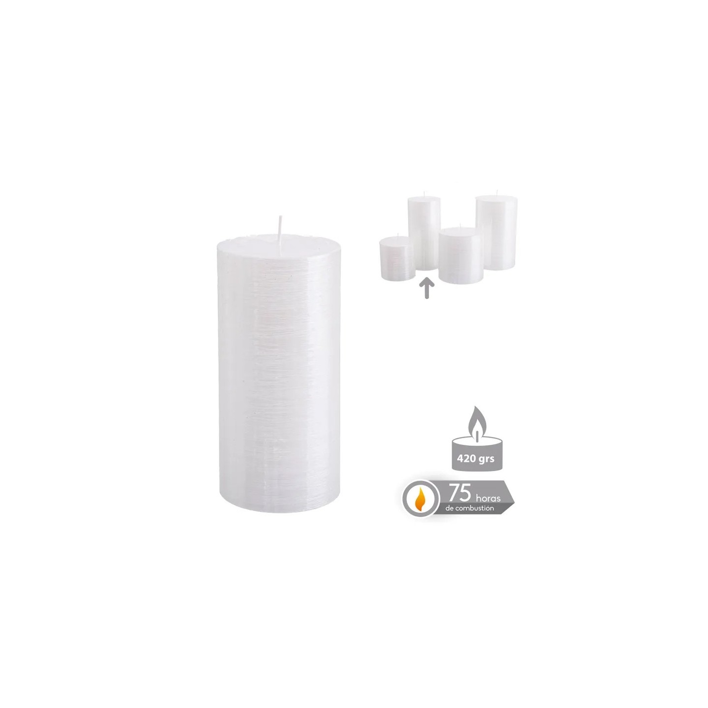 • Vela Cilíndrica Blanco Nacarado Navidad 6,8x14 cm | Decoración Navideña