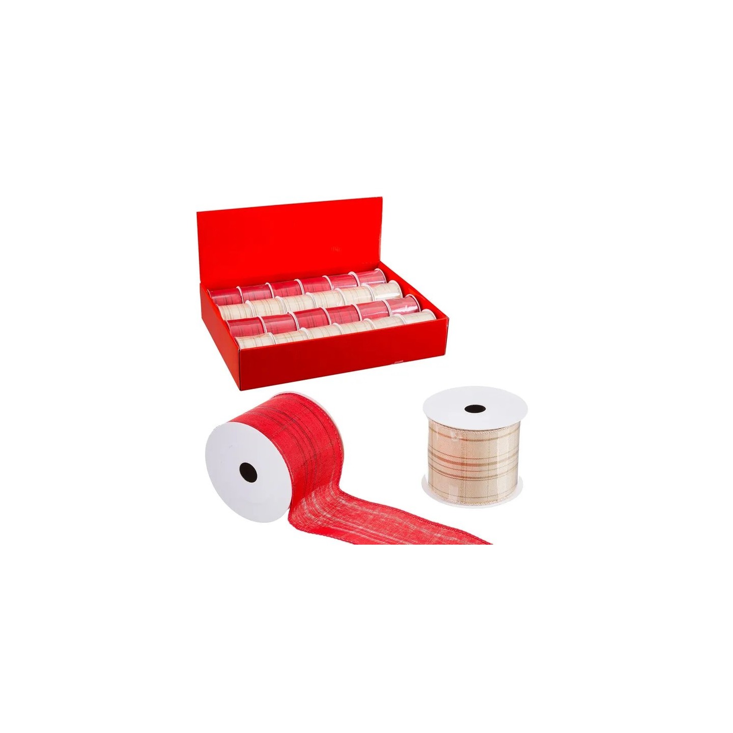 • Rollo Cinta Lino Beige-Rojo 270x6,3 cm 2 Modelos | Decoración Navidad