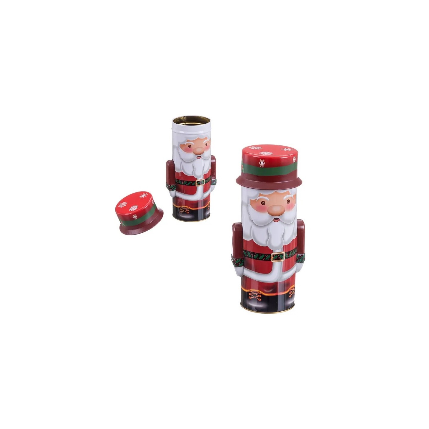 Caja de metal con diseño de Papá Noel, tamaño 8,5 x 8,5 x 24,3 cm. Ideal para regalos, dulces o decoración navideña.