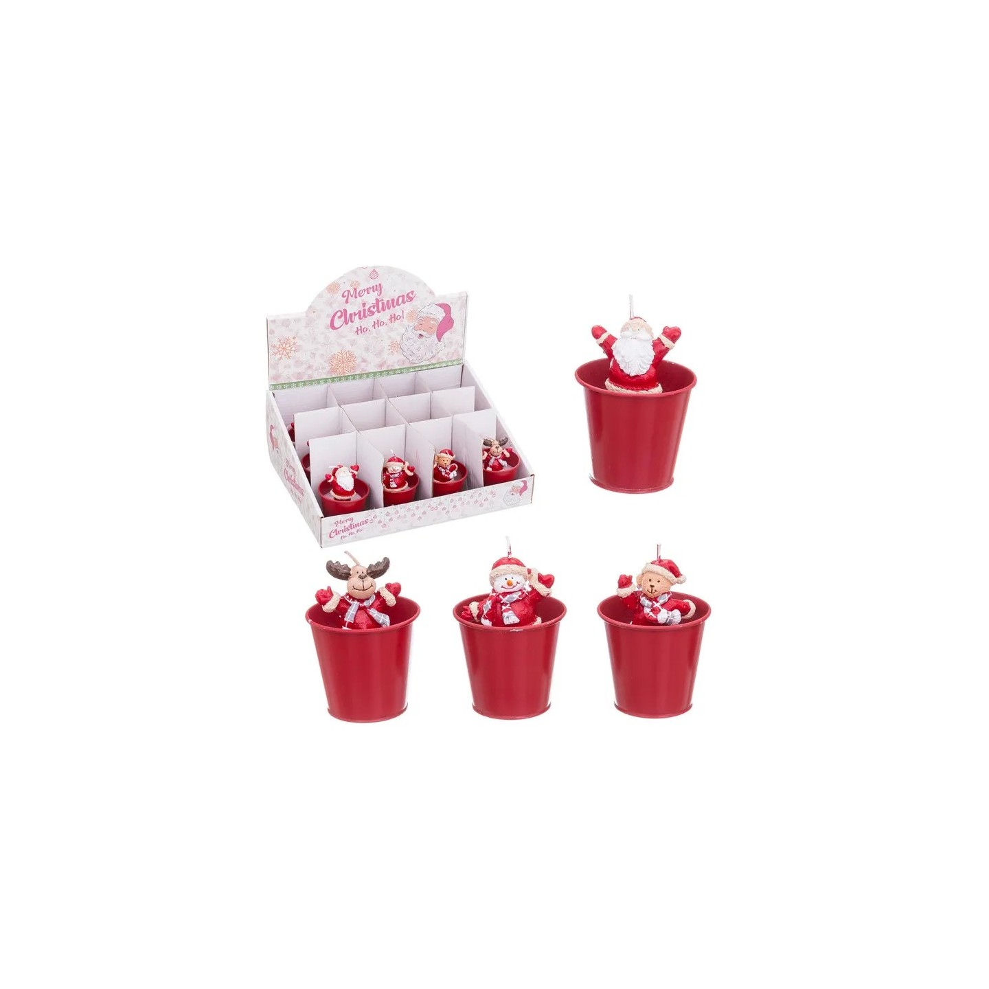 Vela decorativa con forma de figura navideña, 100% parafina, disponible en 4 modelos. Tamaño 6 x 4 x 7,5 cm. Ideal para decorar el hogar en Navidad.