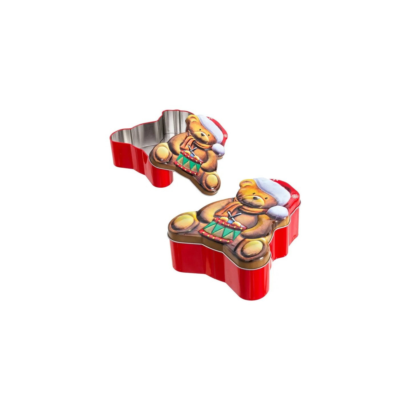 Caja de metal con diseño de oso, tamaño 18 x 14,5 x 6,8 cm. Perfecta para regalos, dulces o como detalle decorativo navideño.