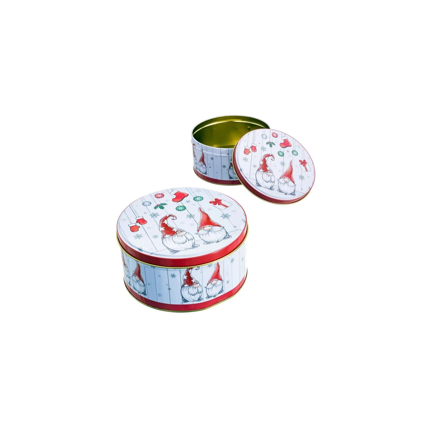 Caja de metal con diseño de Papá Noel, tamaño 14 x 14 x 7,3 cm. Ideal para regalos, dulces o decoración navideña.