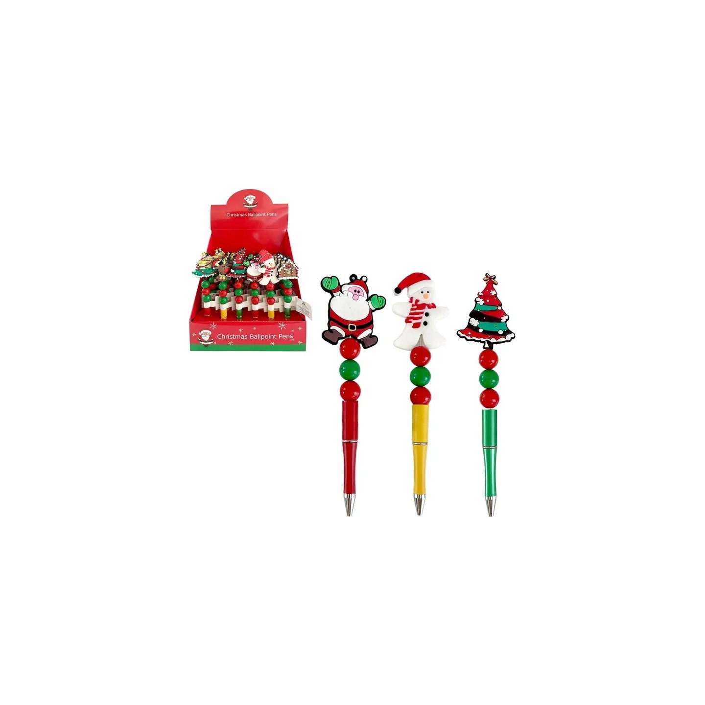 Bolígrafo de plástico, 6 modelos disponibles, tamaño 3 x 1 x 21 cm. Ideal como detalle navideño o regalo festivo.