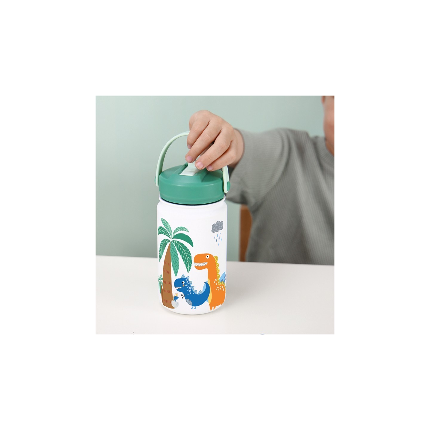La Botella Térmica 330 ml Ice Green – Dino Land es ideal para los pequeños amantes de los dinosaurios. Fabricada en acero inoxidable de alta calidad, conserva la temperatura de las bebidas por largo tiempo, ya sean frías o calientes. Su adaptador infantil permite un uso sencillo y sin derrames, perfecta para el colegio, excursiones o actividades al aire libre. Con un bonito tono verde hielo y un encantador diseño de dinosaurios, esta botella combina diversión, durabilidad y practicidad. Reutilizable, resistente y fácil de limpiar, es una opción ecológica y segura para el día a día.