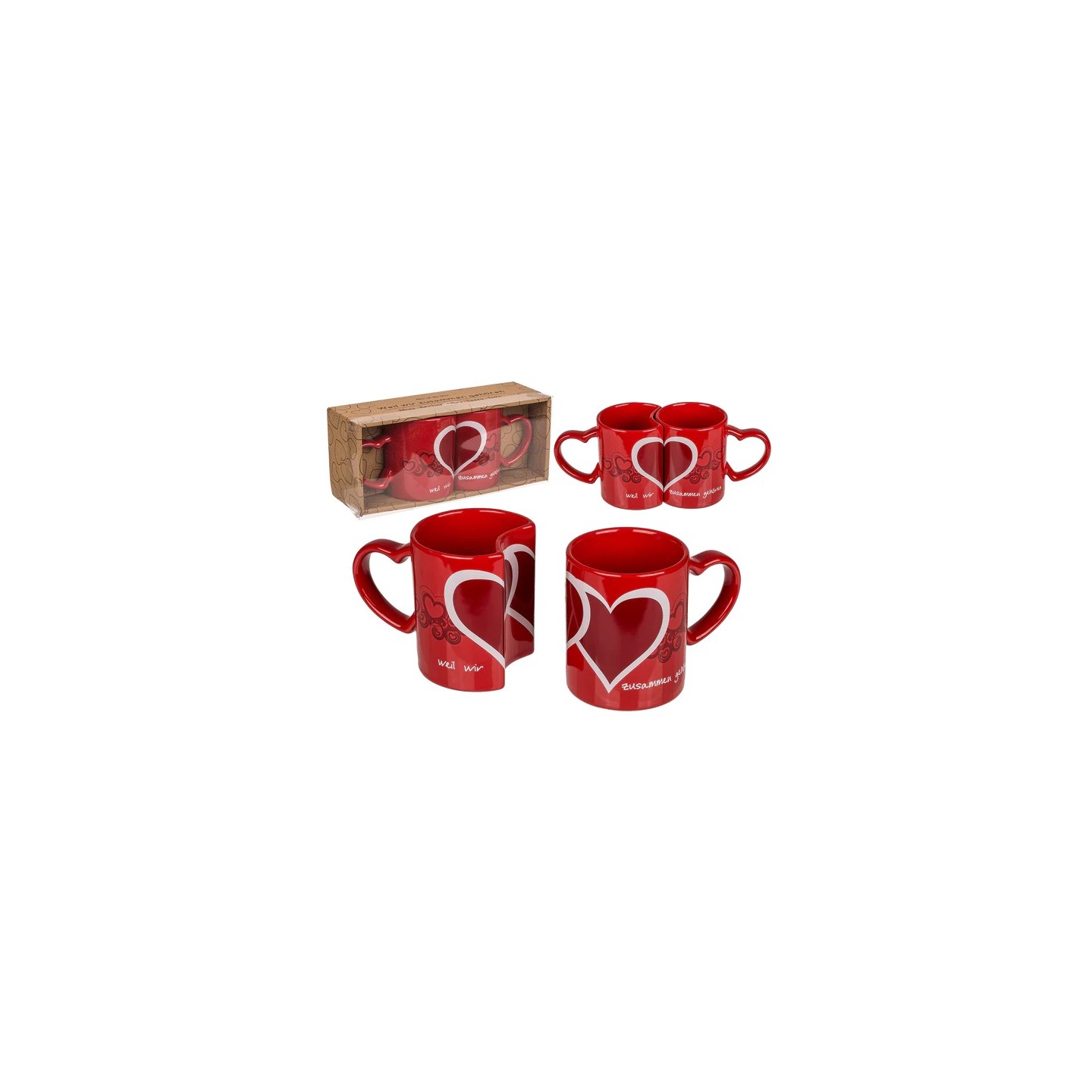 Taza doble “Weil wir zusammen gehören”, ideal para parejas y como regalo romántico para San Valentín y el Día del Amor.
