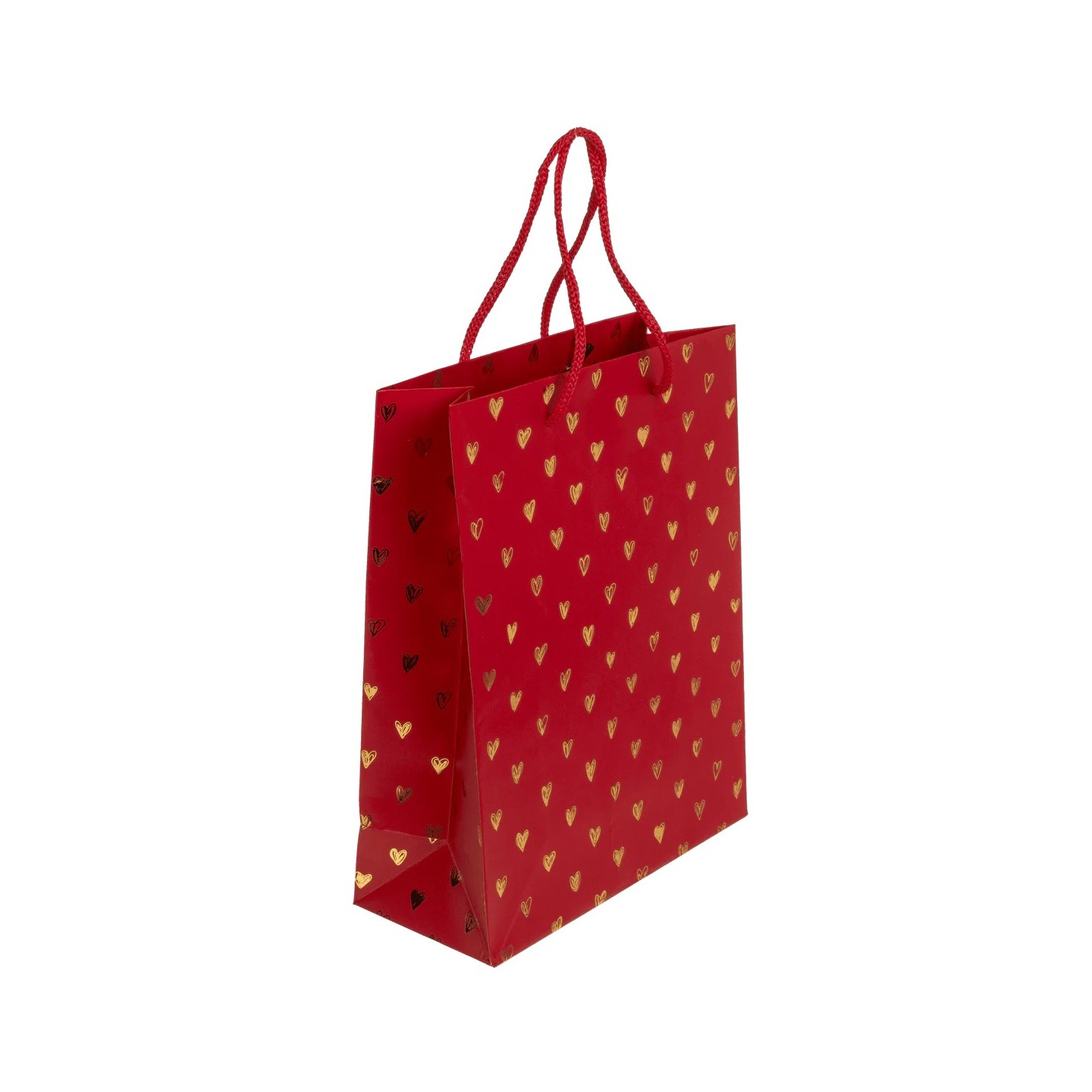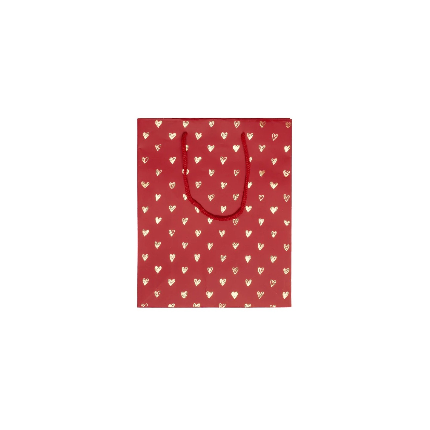 Bolsa de papel de regalo roja con corazones 18x23x8cm