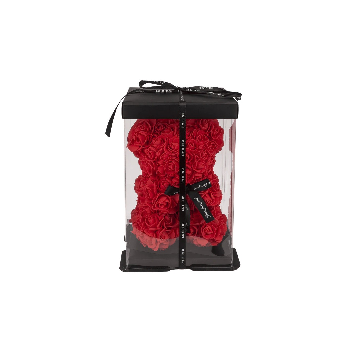Osito de rosas de 25 × 16 × 16 cm, presentado en una elegante caja de regalo. Un detalle tierno y perfecto para sorprender en ocasiones especiales.