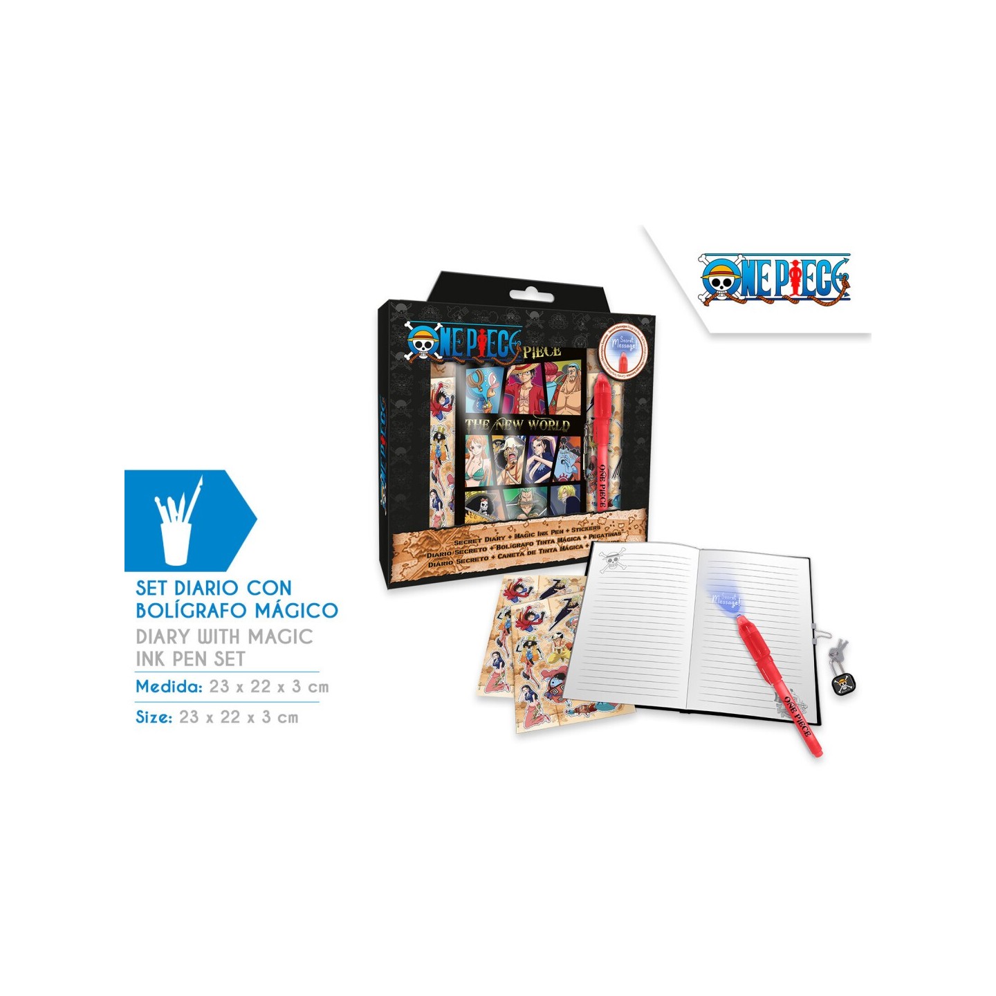 El Diario con bolígrafo mágico One Piece es un accesorio imprescindible para los verdaderos fans del anime. Su bolígrafo mágico permite escribir mensajes secretos que se revelan con facilidad, haciendo cada nota divertida y misteriosa.