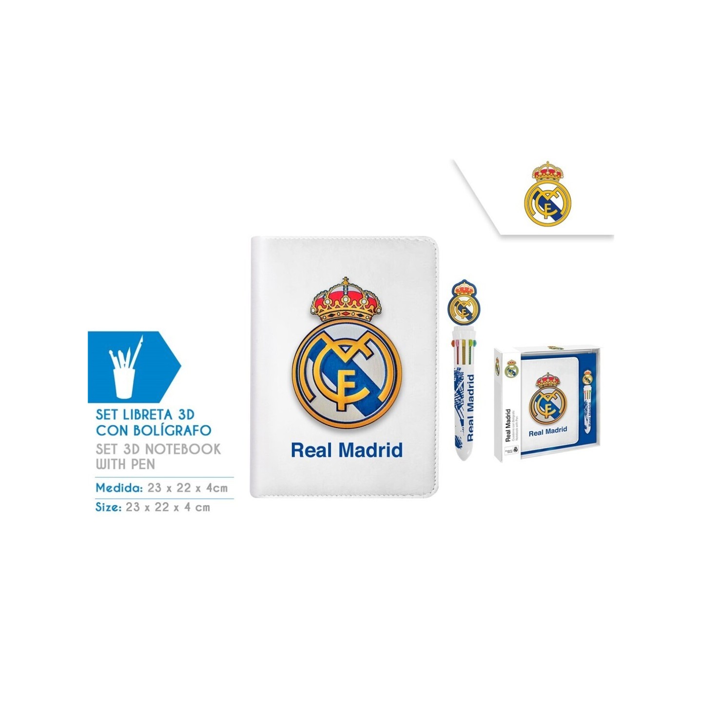 Libreta fabricada en material EVA con diseño oficial del Real Madrid, incluye bolígrafo a juego. Ideal para la escuela, oficina o como regalo para aficionados del club.