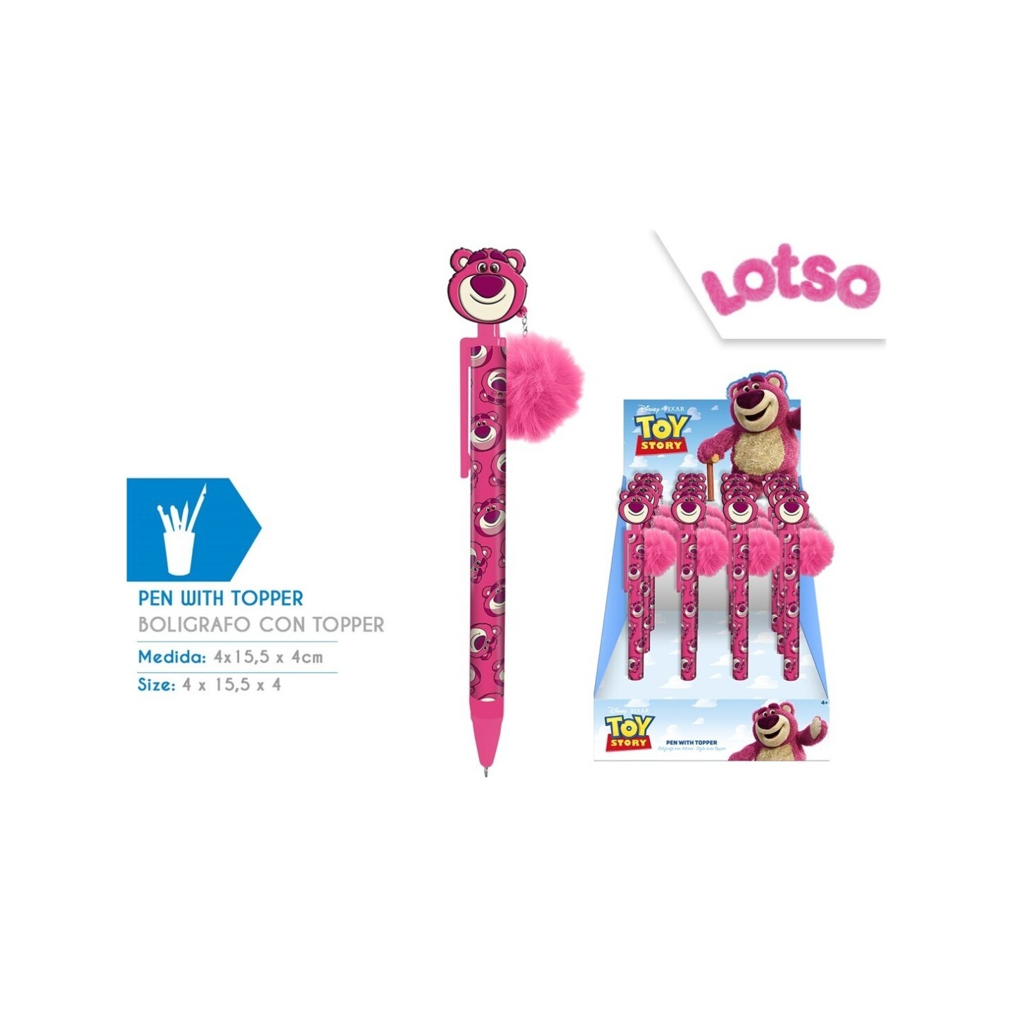 Bolígrafo con topper decorativo de Lotso, presentado en CDU, ideal para exhibición y venta en punto de venta.
