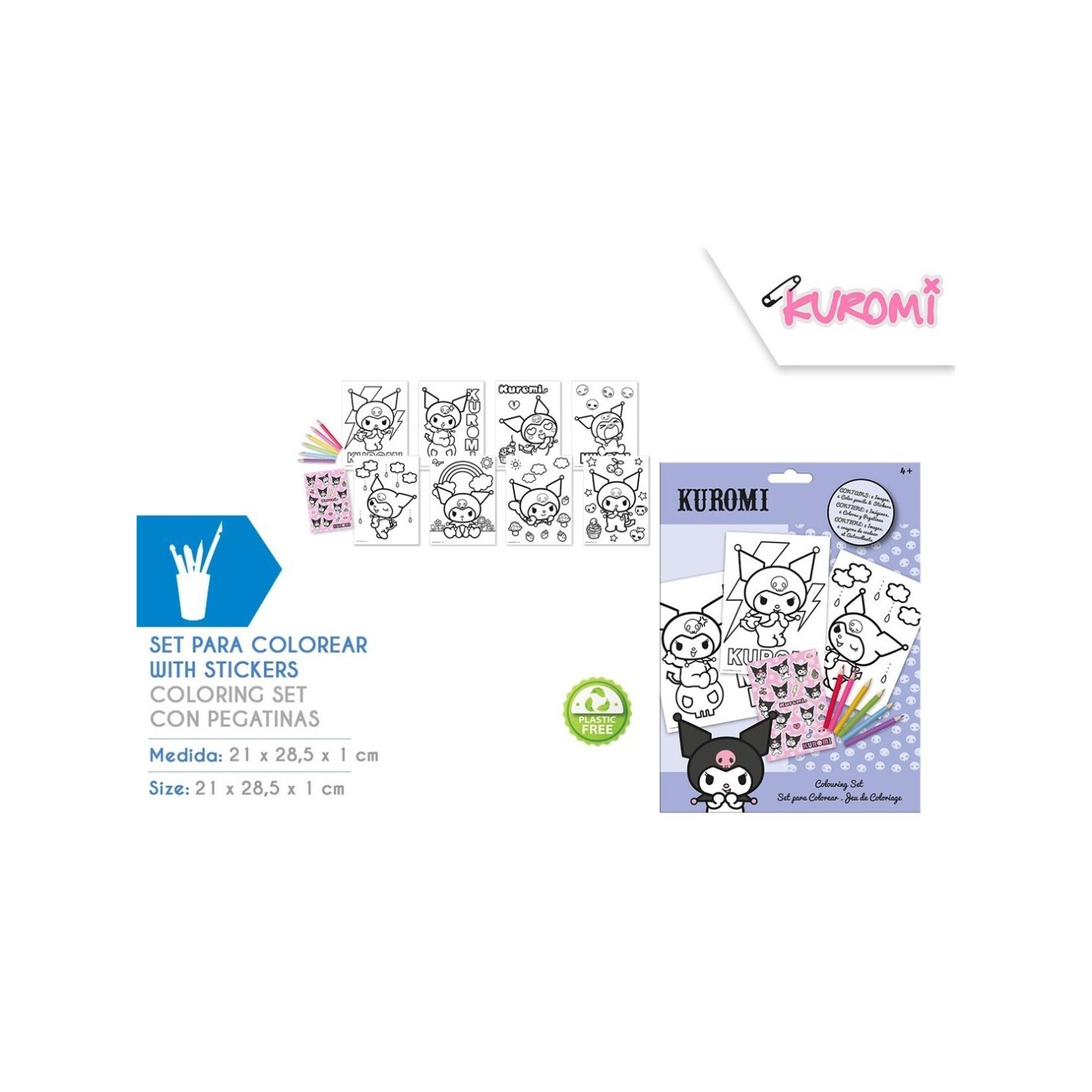 Set de colores con stickers de Kuromi, ideal para actividades creativas, escolares y para fans del personaje.