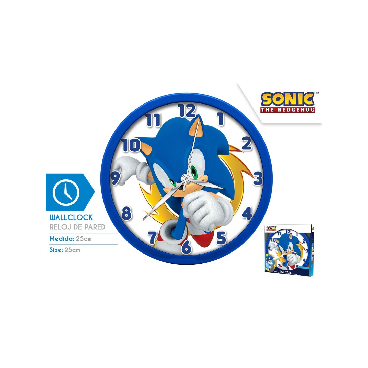 Reloj de pared Sonic, ideal para fans del famoso personaje y para decorar espacios infantiles o de videojuegos.