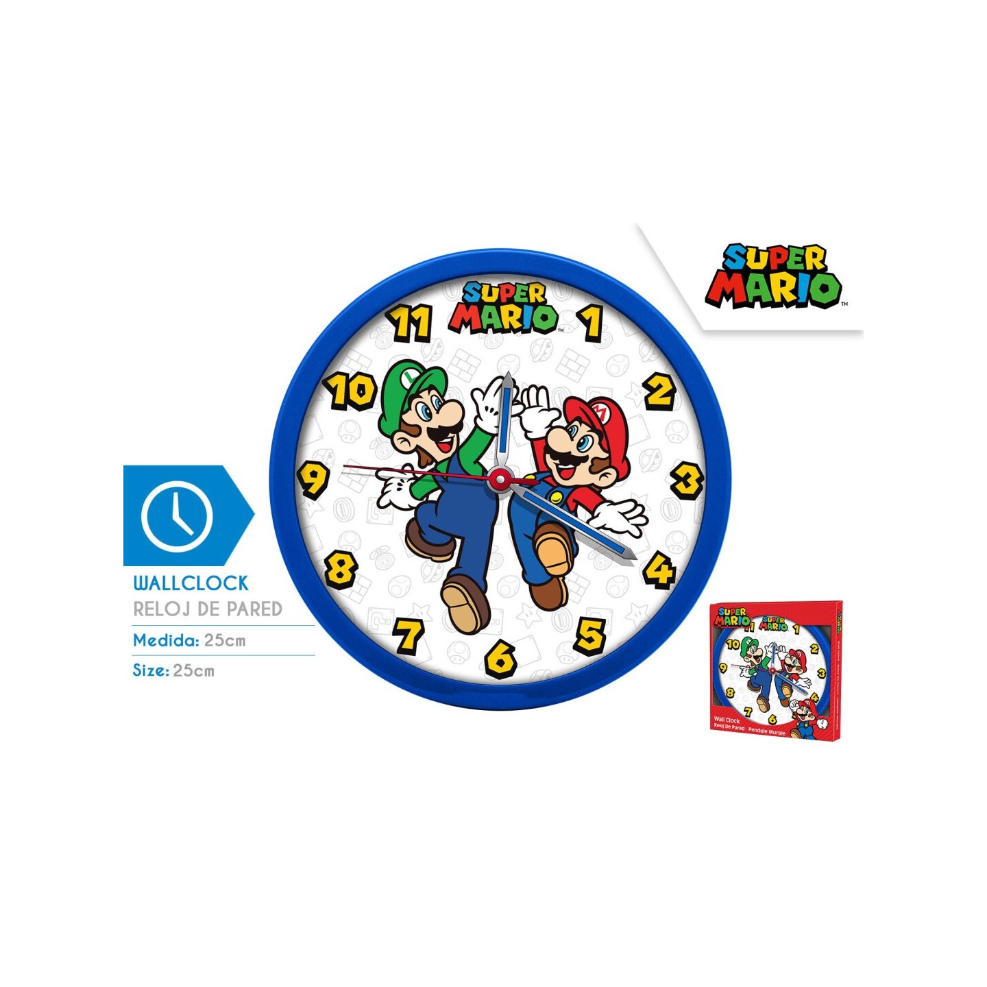 Reloj de pared Super Mario, ideal para decorar espacios infantiles o gamer con un diseño divertido y clásico.