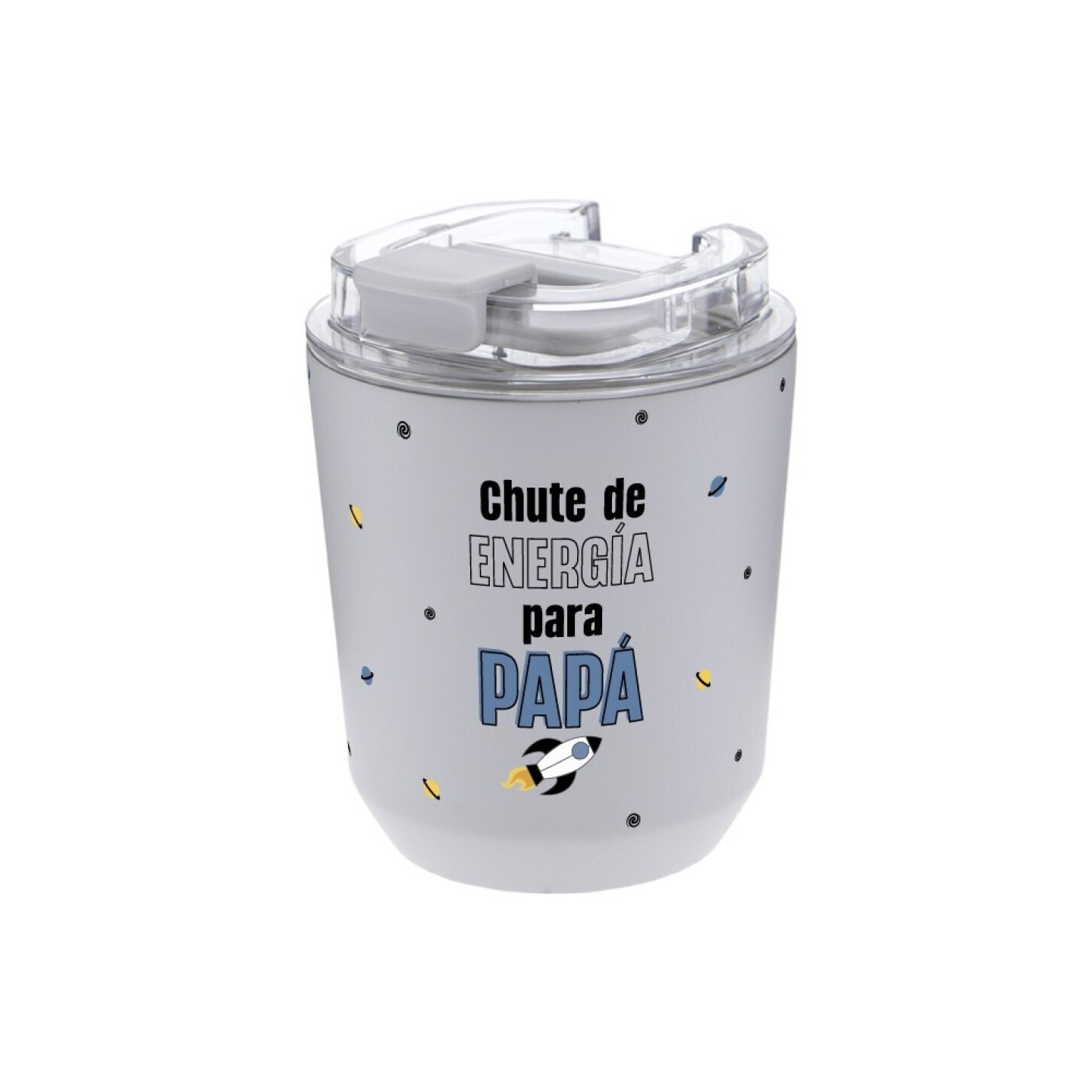 Este vaso térmico para papá es ideal para mantener bebidas calientes o frías durante más tiempo, perfecto para el trabajo, paseos o momentos de descanso. La frase “Chute de Energía para Papá” lo convierte en un detalle funcional y lleno de personalidad.