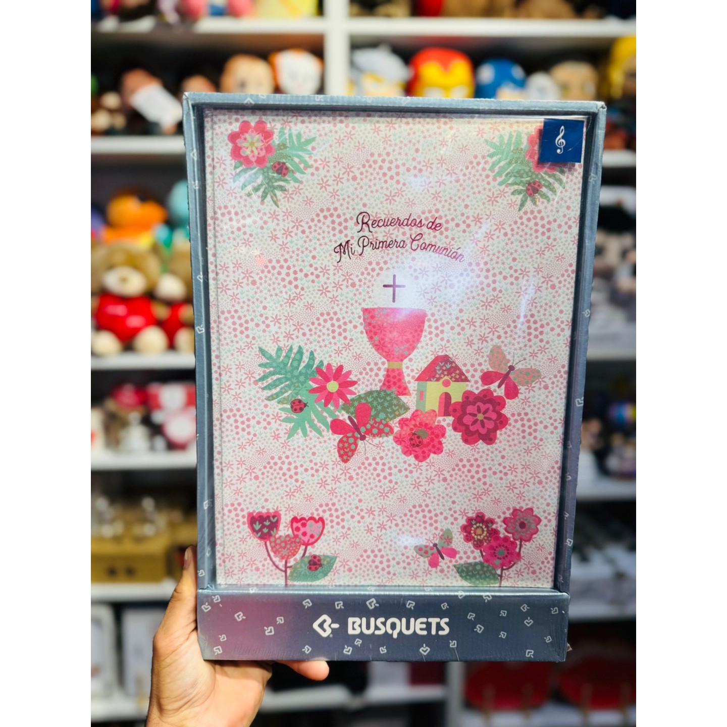 El libro de firmas Comunión rosa con Música es perfecto para niñas amantes de la música que celebran su Primera Comunión. Su diseño en tonos rosa suaves, combinado con notas musicales y elementos decorativos armoniosos, transmite dulzura y personalidad.
