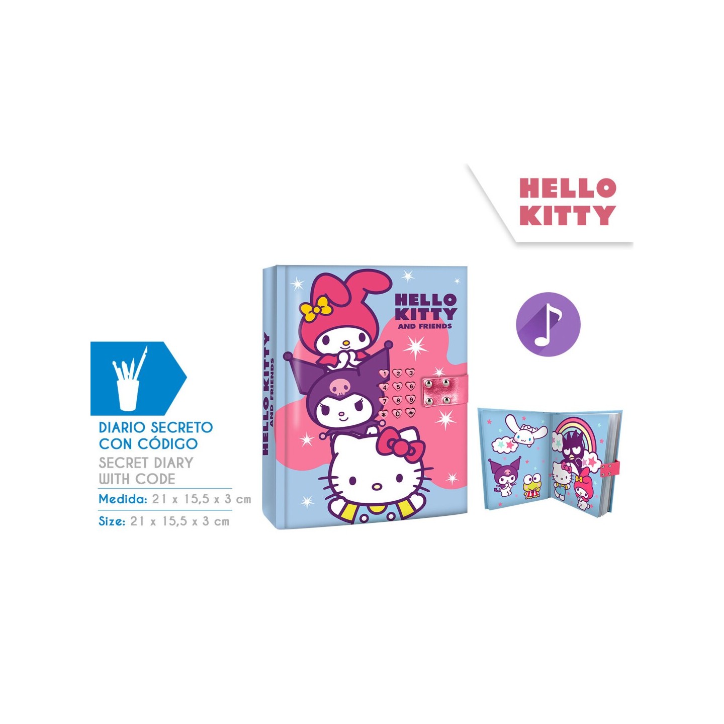 Diario de Hello Kitty con cierre de seguridad y sonido al abrir. Ideal para peques que aman escribir y quieren un diario único, divertido y lleno de estilo kawaii.