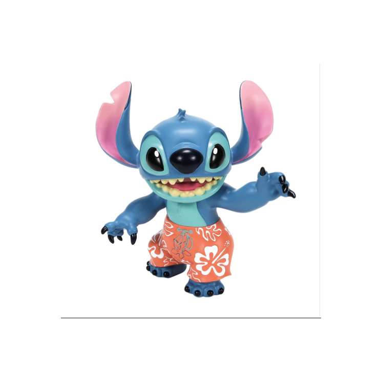 La Figura Stitch Aloha - Disney Showcase muestra a Stitch en todo su esplendor tropical con un diseño lleno de color y vida. Ideal para decorar tu hogar o añadir a tu colección Disney, esta pieza representa la alegría y el amor de Stitch en su famosa pose "Aloha".