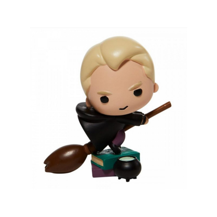 Figura coleccionable de Draco Malfoy en estilo chibi, montado en su escoba. Ideal para fans de Harry Potter y coleccionistas de estilo kawaii.